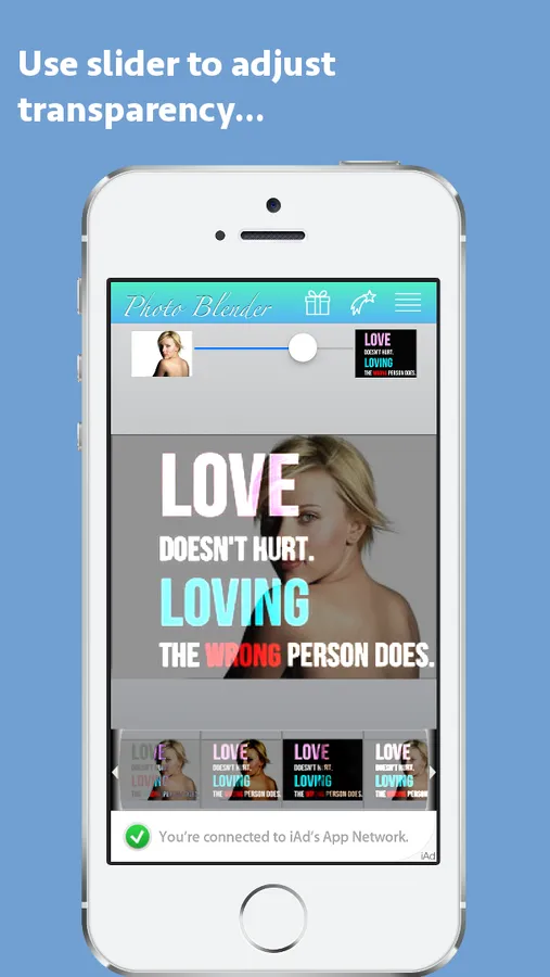 A very simple to use app with many exciting features for combining two images with various blend modes. The response time is amazingly fast to create your blend effect!