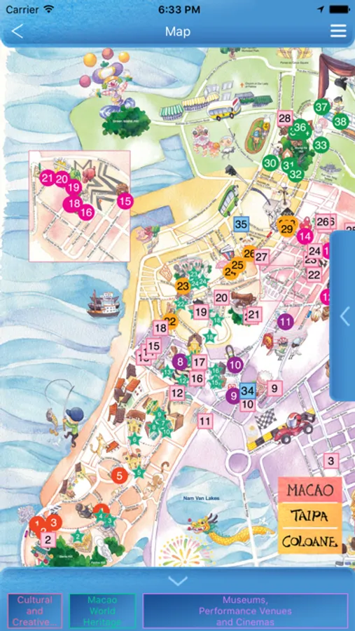The Macao Cultural and Creative Map provides relevant data of Macao’s cultural and creative entities, with GPS and shop hunting functions for users’ easy browsing of cultural and creative spaces and quaint shops full of peculiarities. The map will be your handy guide to travel around this charming small city, to feel the pulse of its rich culture and experience the unique creativity of the Macao merger of tradition and modernity!