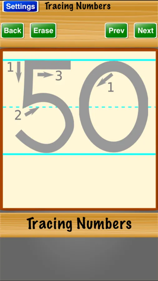 Tracing Numbers is a great way for the family to practice tracing numbers. Select the options in the "Settings" screen. Play until you master the game.