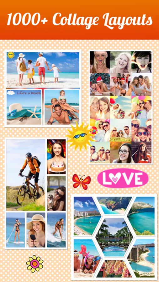 Photo Collage Creator packs a simple design with a powerful editor to give you everything you could possibly want to make your photo's simply amazing. All 1000+ layouts are FREE!!! In fact almost all the features are FREE! You'll really love the creativity with endless combinations of patterns, stickers, text, borders, filters, shapes,frames and more.