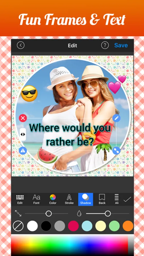 Save to Camera Roll or share your masterpiece on your favorite social media networks including Facebook, Twitter and Instagram.