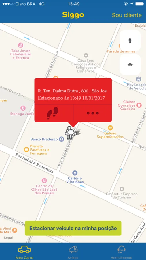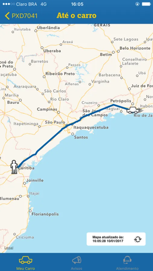 -Até o carro - Permite traçar uma rota até a posição onde o veículo se encontra;