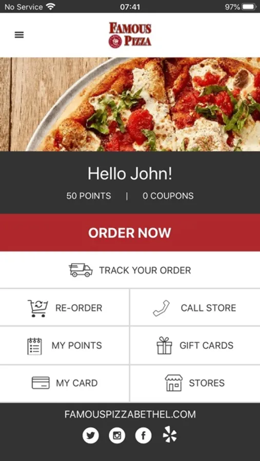 The official mobile app for Famous Pizza, Bethel is now here, bringing you the ability to order from all locations. Ordering from Famous is as easy as eating a Pizza! With this app you can track your loyalty points, view your coupons, pay with your gift card and order your favorite food online.