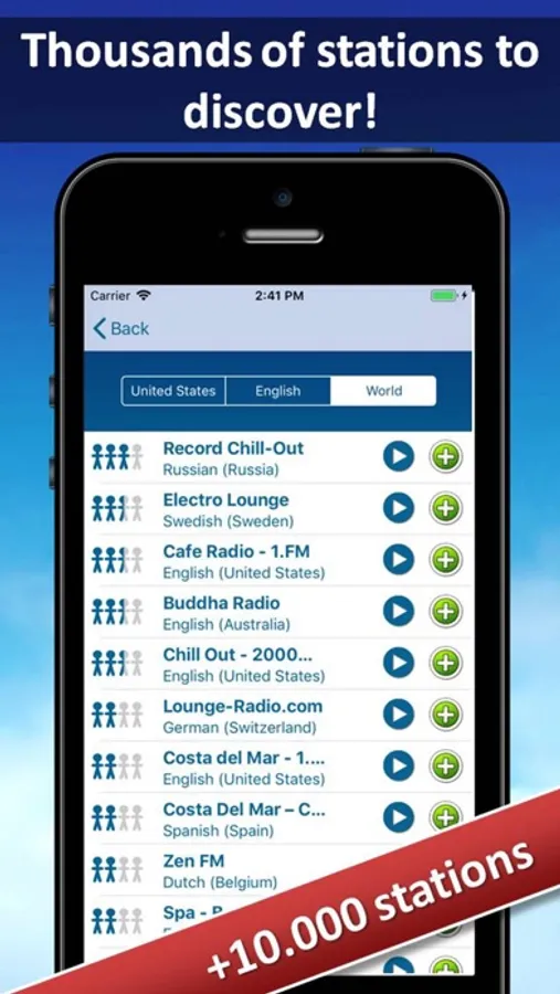 You have access to our complete database which includes tens of thousands of radio stations around the world! You can try any radio, and you add your choice to your favorites.