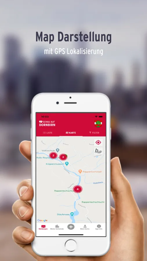 Die „Schau auf Dornbirn“-App bietet Bürgerinnen und Bürgern eine schnelle und einfache Möglichkeit Anregungen, Lob und Kritik der Stadt Dornbirn mitzuteilen.