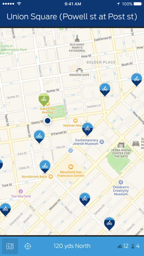 Find out how many available docks there are at your destination easily with the full-map mode. You can even set a ride timer to help track your Ford GoBike rental and prevent late fees.