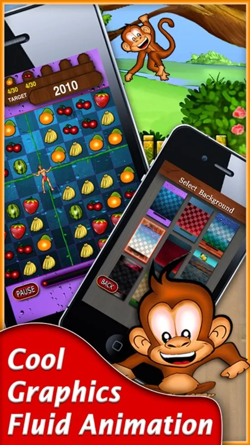 - Excite Monkey & Tarzan by swiping over them along with similar fruit chains.