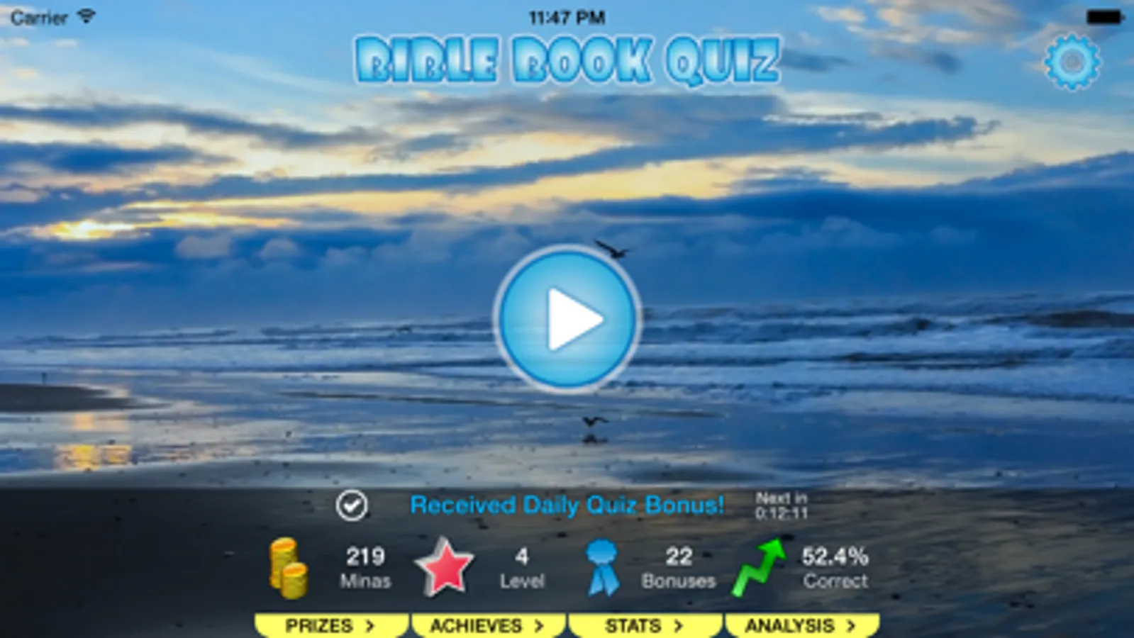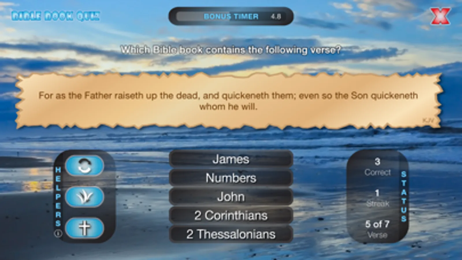 • Quizzes are randomly generated from all 66 Bible books