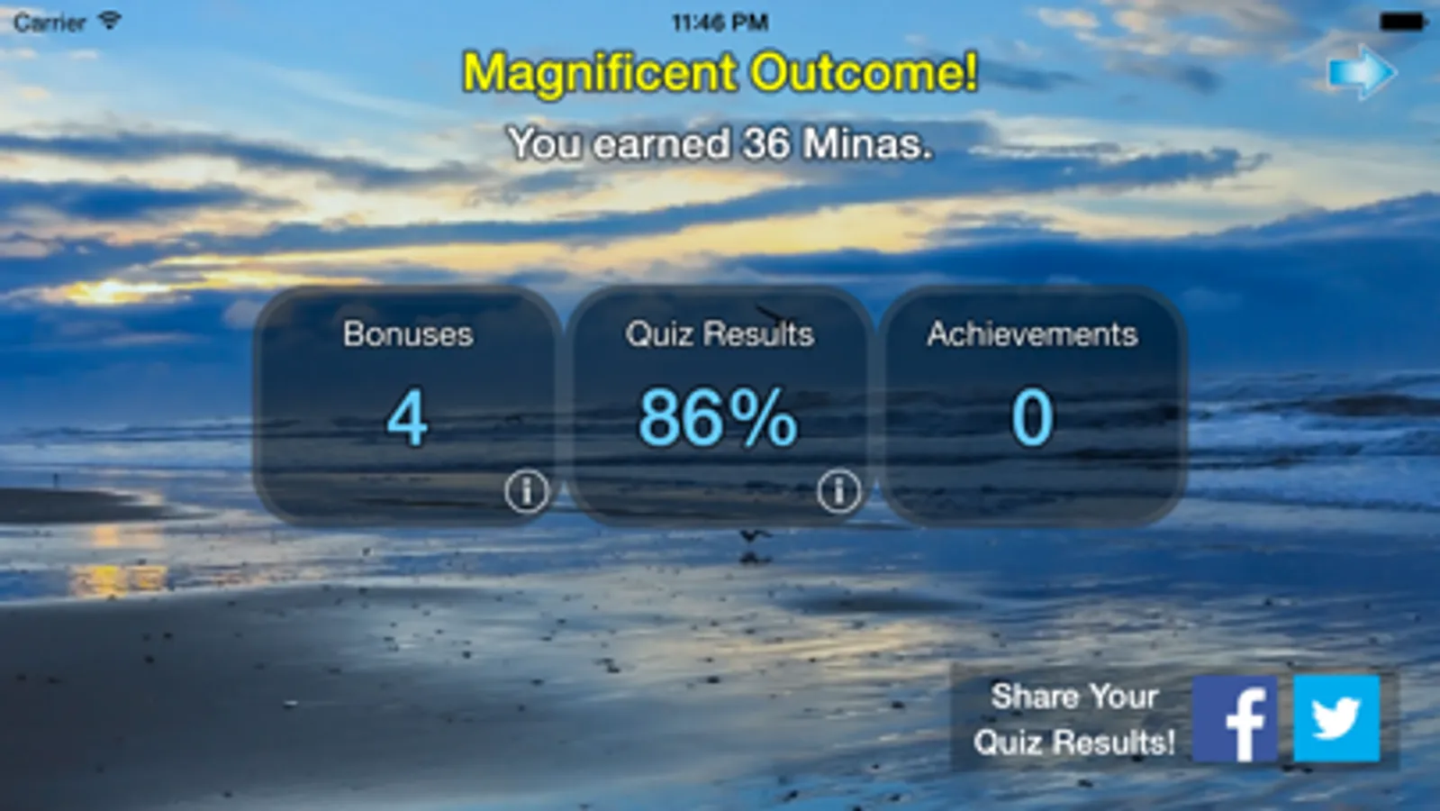 • Share favorite verses or quiz results to Facebook or Twitter*