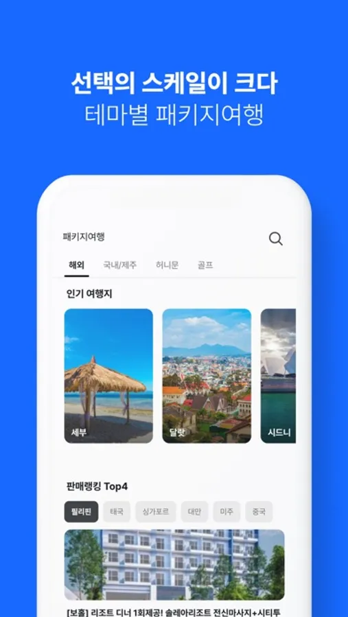 - 허니문(신혼여행) / 자유여행 / 반자유 등 테마별로 지원하는 패키지 여행!