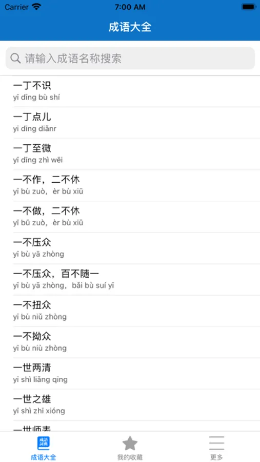 支持成语搜索及收藏。