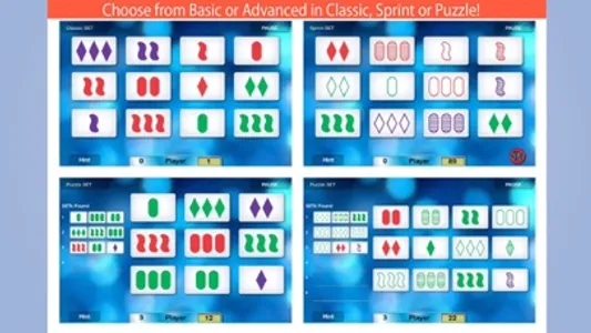 · Sprint SET challenges you to find the most SETs - in either 60 or 90 seconds (Basic or Advanced).
