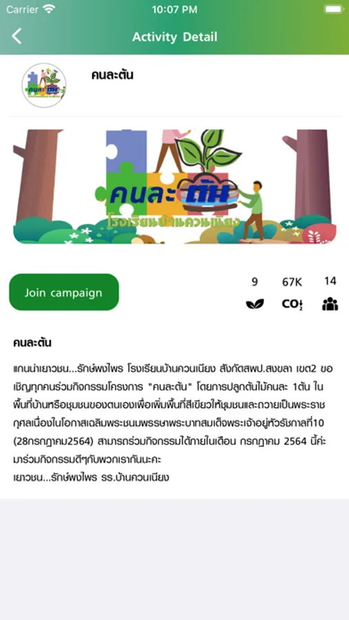 4. Green Campaign Open tree campaign creation for Organization, and allow user choose tree campaign when cultivated plants for record statistic and location under Organization’s campaign.