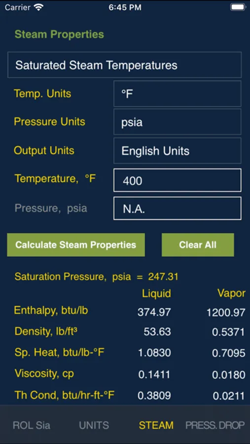 Steam Properties: Enthalpy, Density, Heat Capacity, Viscosity, Thermal Conductivity of saturated steam, water, and superheated steam.