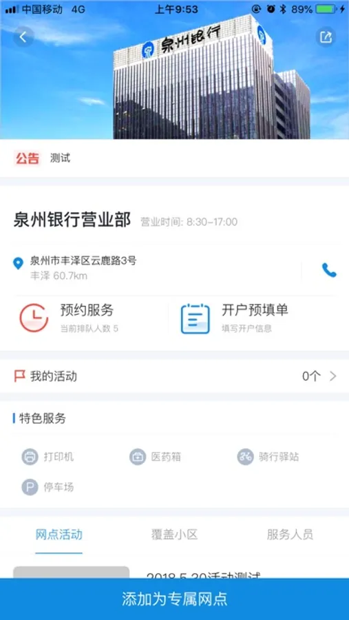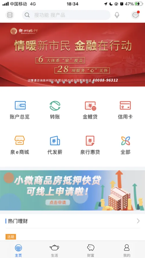 全方位的生活服务,打造更加完善的用户服务,新增专属网点、周边商户、小区服务等模块,将泉州银行真正融入到您的生活之中。