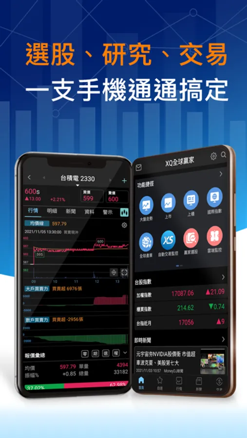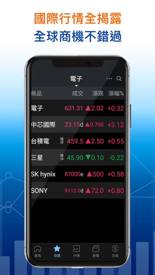 1. 全球報價:全球股市連動,只看台股明顯不夠,除了台股你也能透過XQ瀏覽美、港、陸、韓、日股等資訊,滿足你宏觀的投資視野