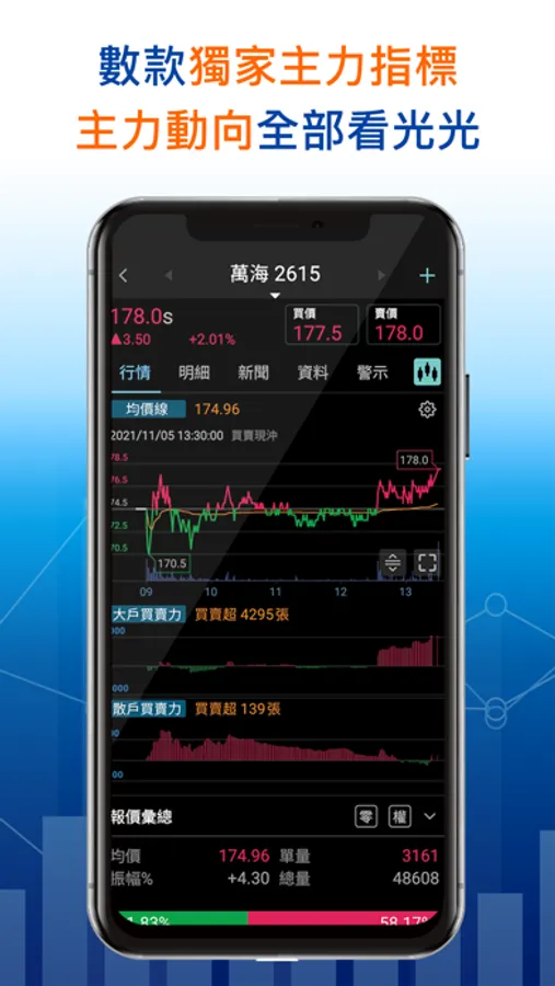 4. 進階籌碼資訊:除了基本的盤後籌碼,XQ也提供了「即時籌碼」資訊,你將永遠與大戶法人站在同一邊