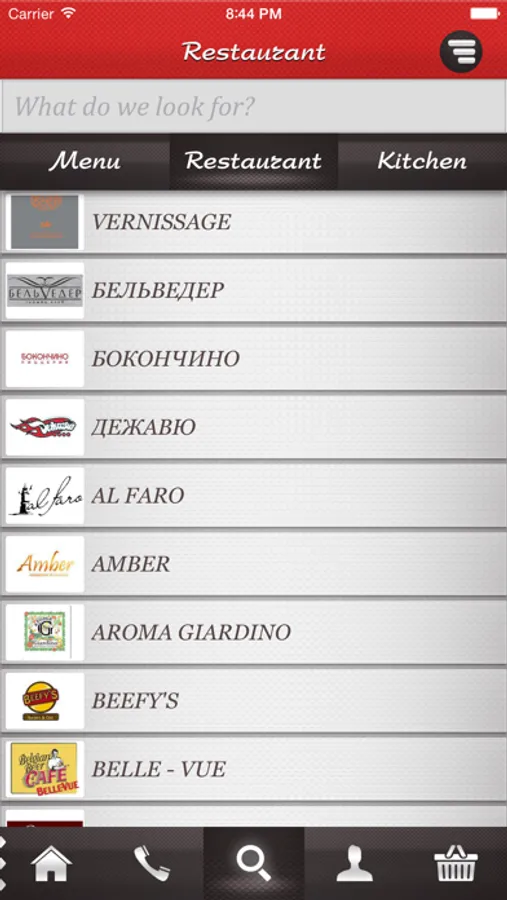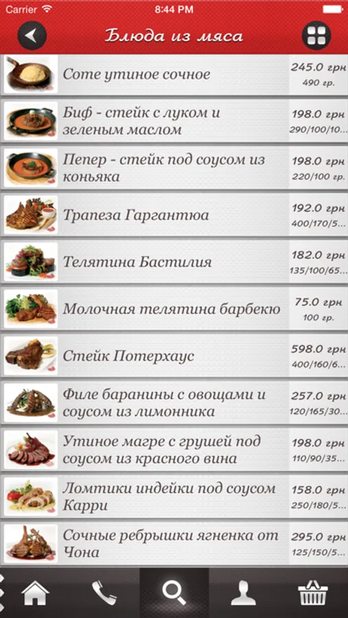 - Подробное меню всех ресторанов с ценами, фото и описанием блюд.