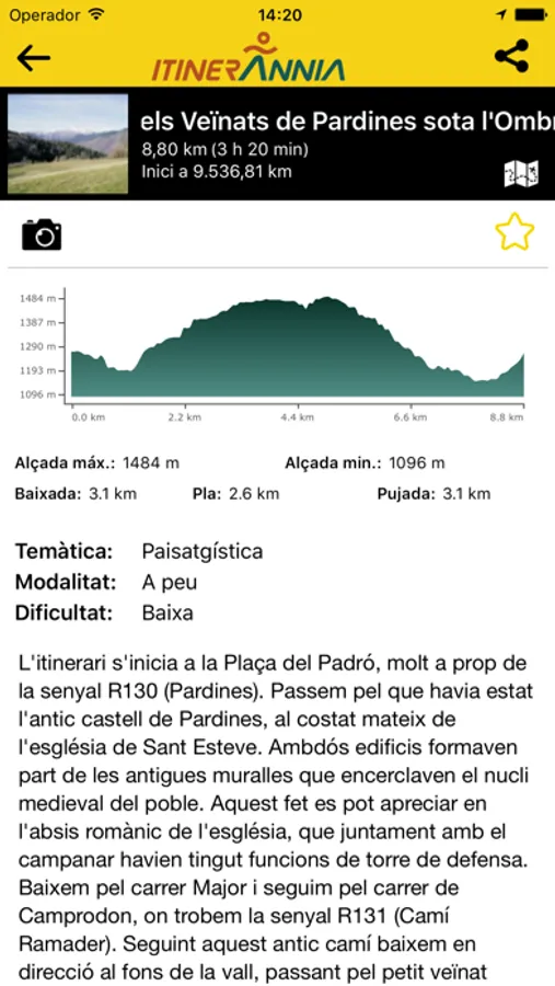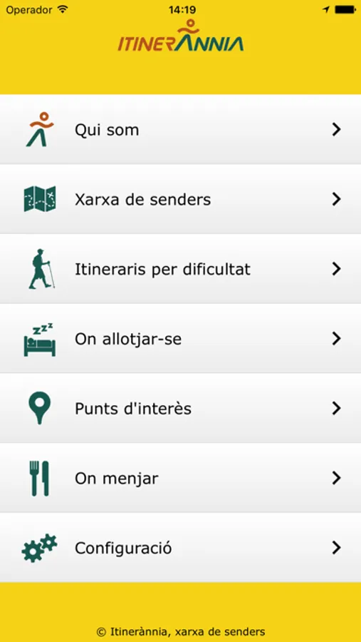 Aquesta APP incorpora la informació de la Xarxa Itinerànnia: camins, punts d’interès, serveis, etc... Aquesta xarxa recupera les antigues vies de comunicació entre els pobles per poder arribar a qualsevol racó, a qualsevol petit indret. La xarxa està formada pels actius naturals i culturals de tres àrees, que són els principals atractius dels visitants al nostre país, i permet caminar dels Pirineus fins al mar i del mar fins als Pirineus.