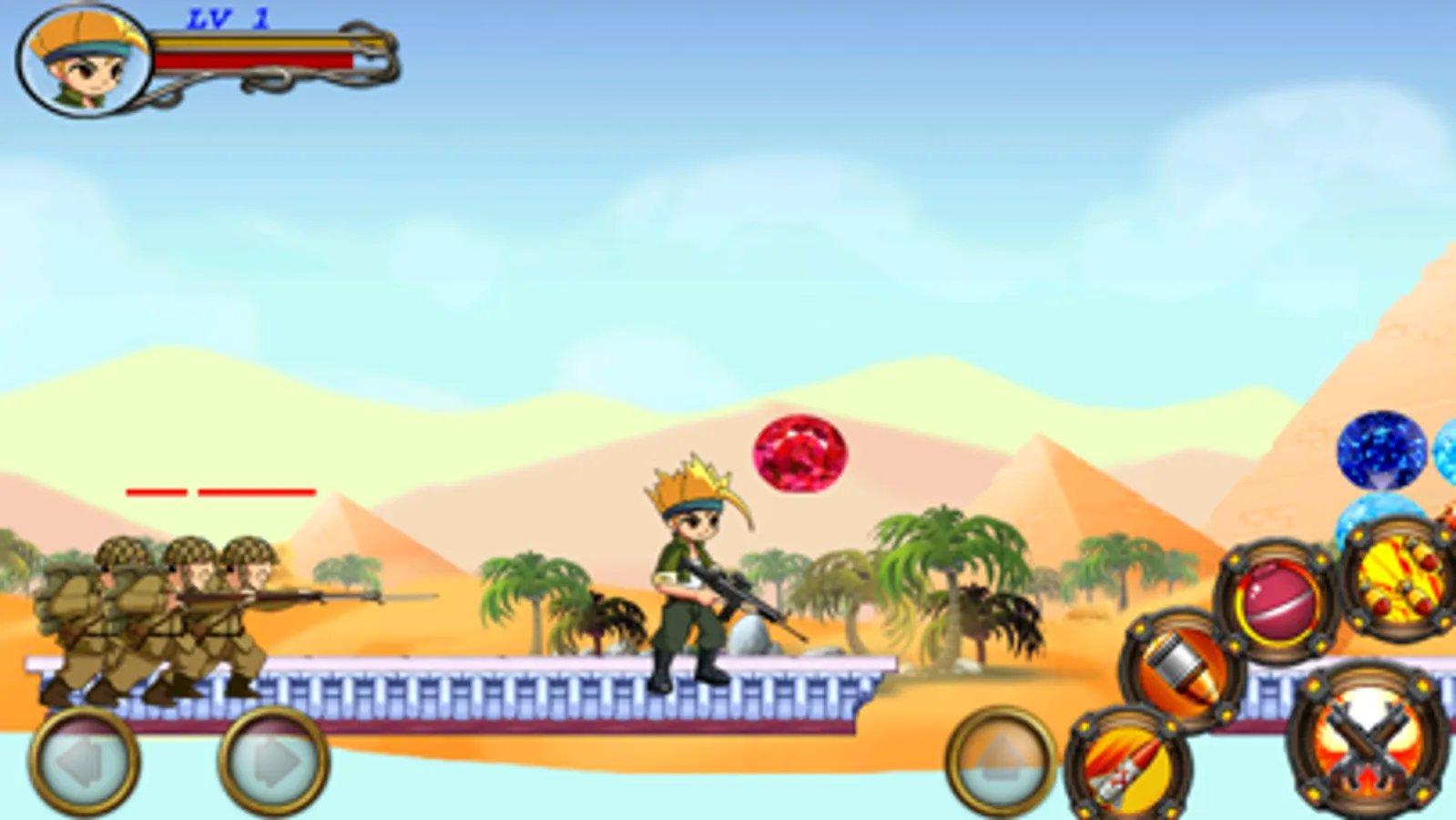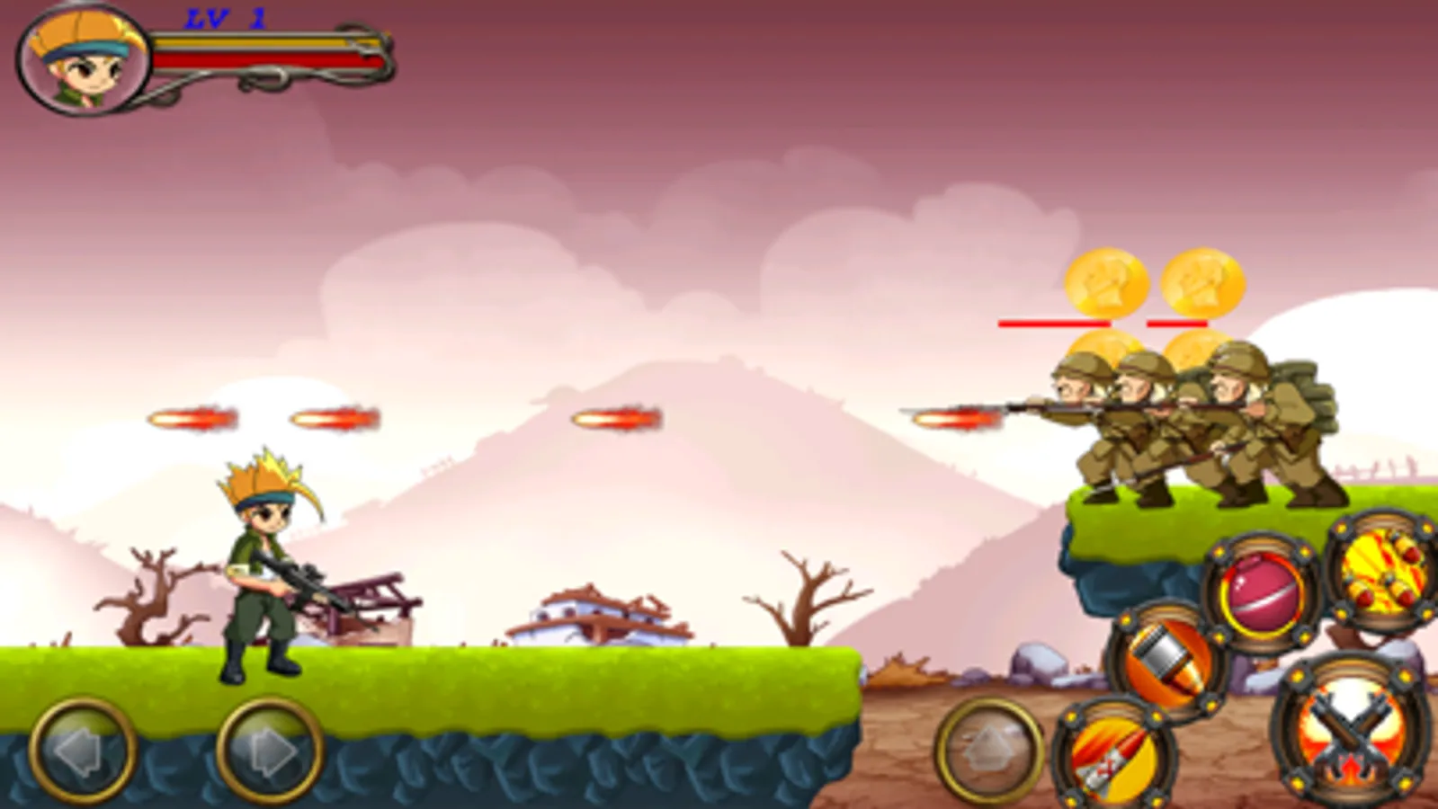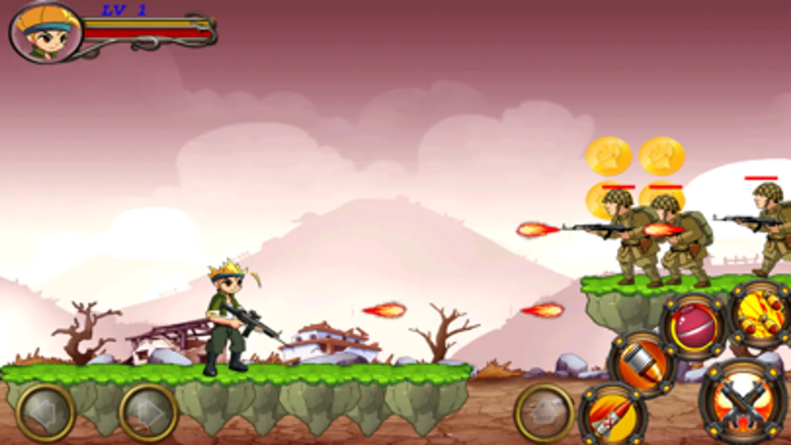 Game by rung jump shooting mode, with the leading action of constant scrolling, ash will be influenced by war and the blood of the battlefield gradually show in front of the players. And abundant bullets at a major bright spot, you will see a large number of enemy soldiers and many chariots and armor