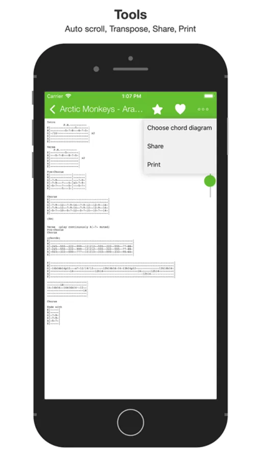 - chord diagrams (guitar, piano and ukulele) with multiple variations and left-handed mode