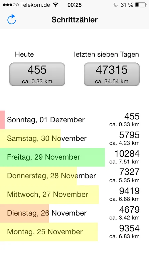 For their health, they should each day to cover 10.000 steps. For a better overview, show them bar the progress of the last seven days.