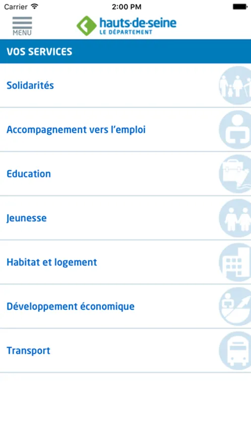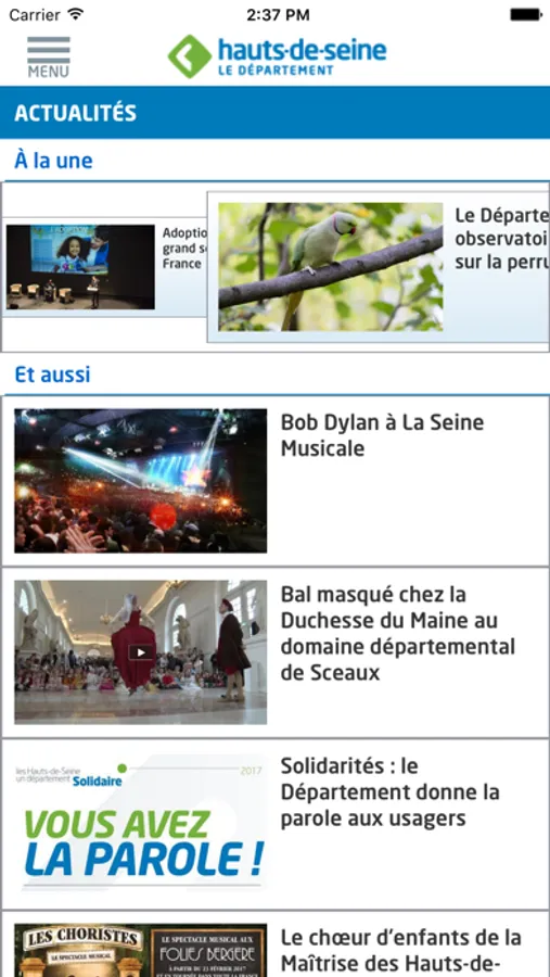 L’application vous permet aussi de découvrir les compétences et les grands projets de l'institution, de prendre connaissance de tous les dispositifs et aides qui vous sont destinés.