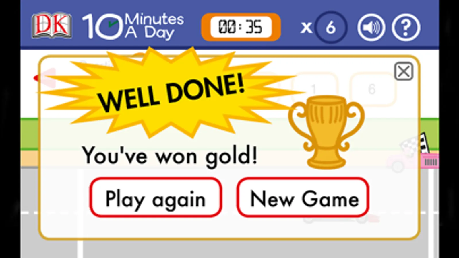 With 10 Minutes a Day Times Tables you can practice your times tables through exciting car races, the faster you solve the questions the quicker your car will speed across the finish line. It’s also a fun ‘beat the clock test’ where you show off your maths skills by racing across the line before the time runs out. If you don’t get the answer right away you’ve got a chance to keep trying for the right one and if you don’t make it you’ll get handy hints and tips to help you next time. Play your way through the rounds, speeding your way from bronze through silver and all the way up to gold. Once you’ve mastered the regular times tables you can test yourself in mixed times tables races, whizzing your way through with your maths knowledge.