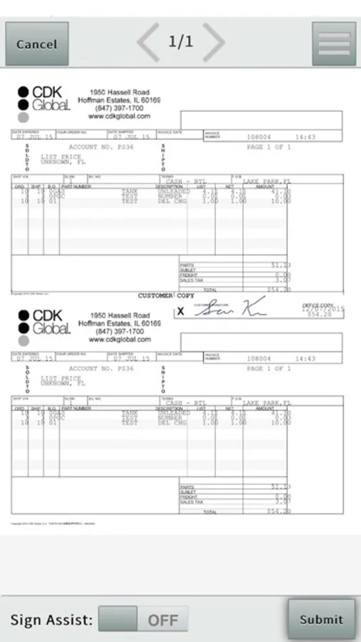 CDK eSignature application enables Dealer Management System (DMS) customers to electronically sign on an iPad to approve service work or purchase parts. This saves valuable time when dropping off or picking up your vehicle or delivering parts to customers.