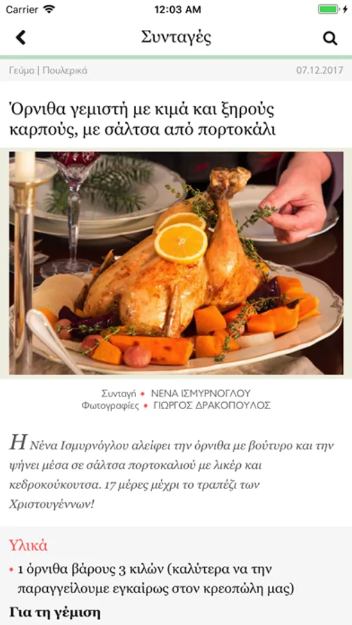 Συνταγές: Νόστιμες και πρωτότυπες συνταγές για κάθε περίσταση από τους σεφ του περιοδικού, με δυνατότητα εύρεσης ανά βασικό υλικό (π.χ. κοτόπουλο, κρέας, ψάρι κ.λπ.) ή είδος πιάτου (γεύμα, σαλάτα, σούπα κ.λπ.).
