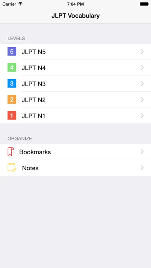 • Vocabulary for N1 to N5 (N1 to N4 are available with In App Purchase)
