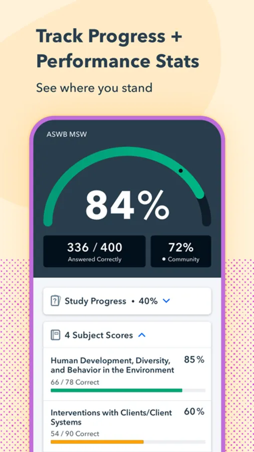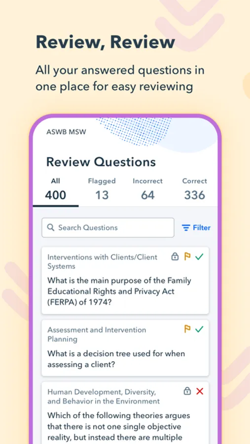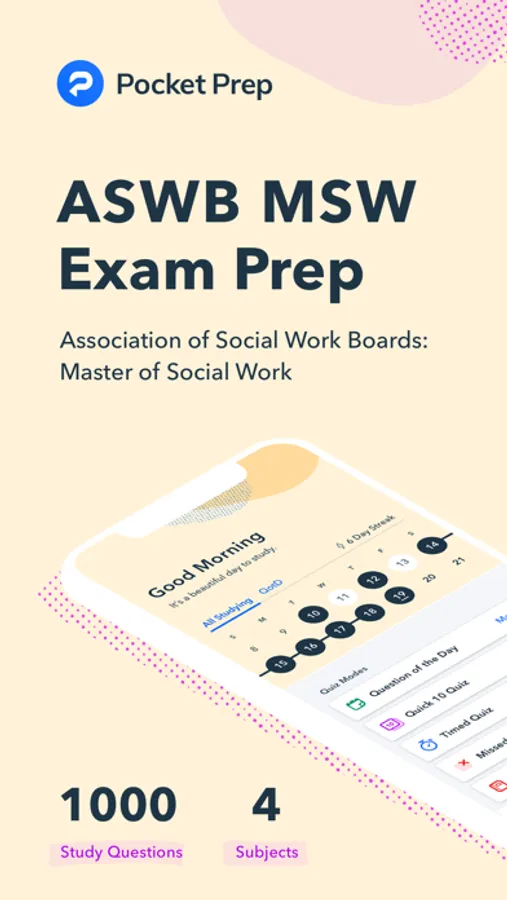 ASWB MSW Pocket Prep gives you access to study prep for 9 different behavioral health exams all in one place, with hundreds of practice questions for each exam.