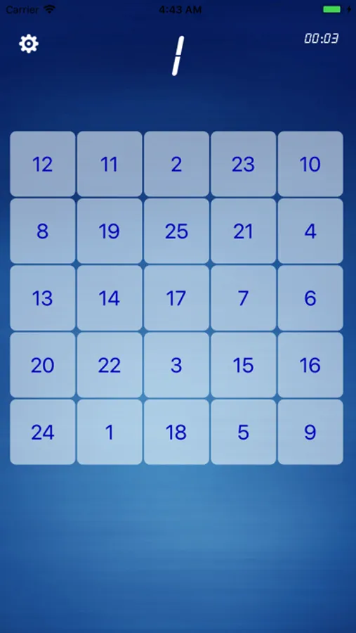 训练时,要求被测者用手指按 1 ~ 25 的顺序依次指出其位置。数完 25 个数字所用时间越短,注意力水平越高。