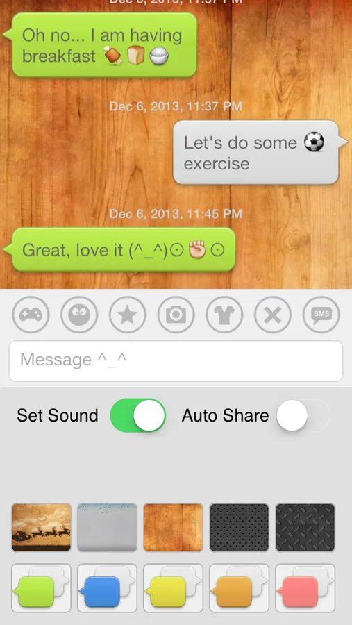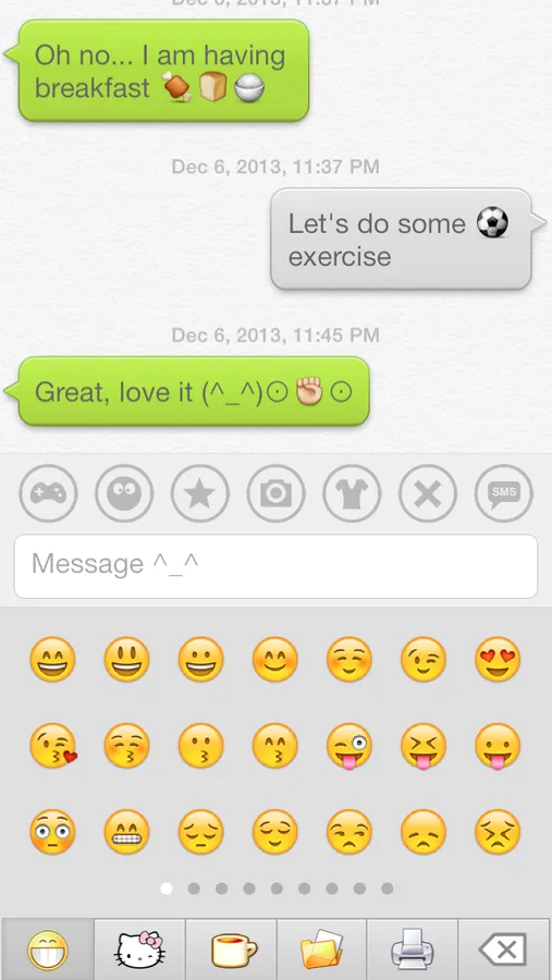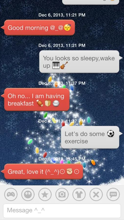 Aqua Emoji Keyboard is an integrated app with standard keyboard, Emojis, ASCII symbol and photo sharing. We will enjoy the great experience on messenger apps. It’s very easy to type a combined emoji message and send to our friends. The outgoing messages are shown as colorful bubble and we can resend it by clicking the bubble. We can attach photos with text message and even can change the background and bubble style.