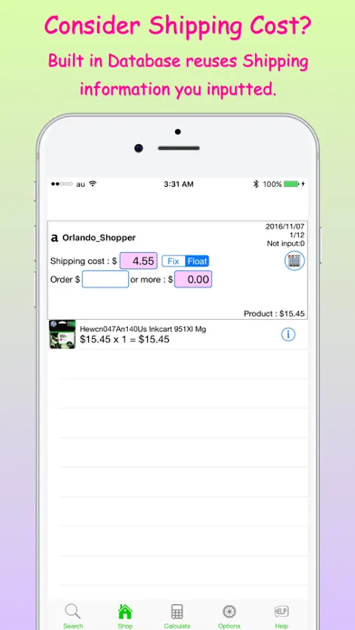 If you choose same item in the future, this app automatically get shipping cost from the database.