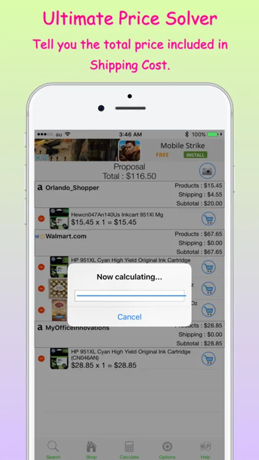 2. Compare prices from all shopping sites (left or right flick moves the store).