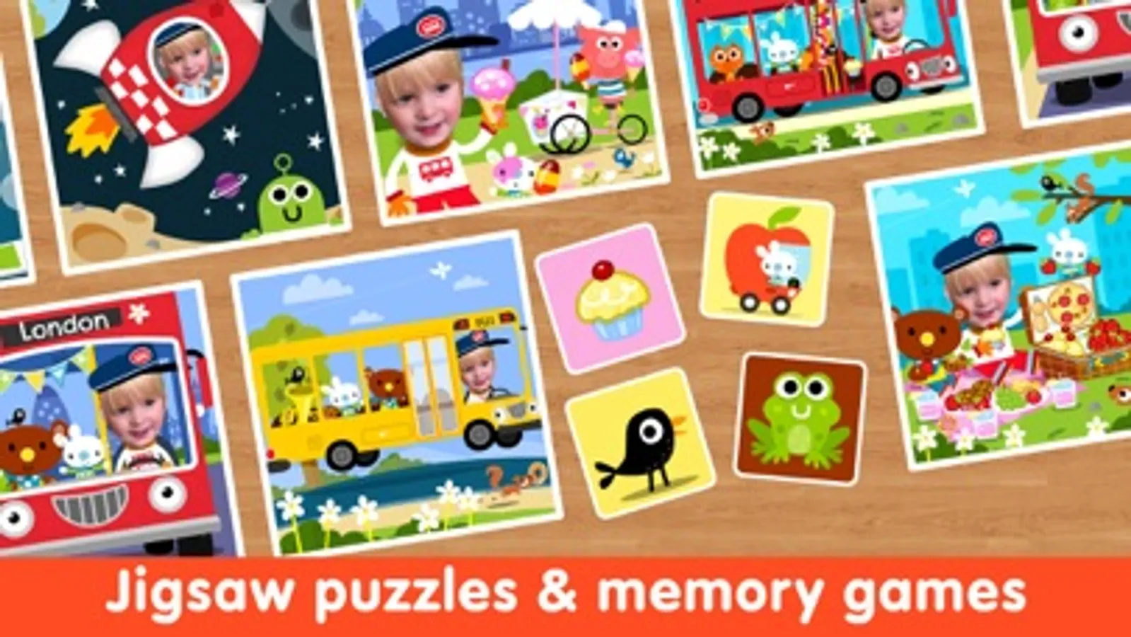 - Starring photo faces of family & friends - great for face recognition (& giggles!)