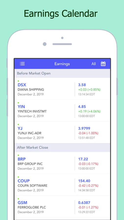 Easily add earnings events to your device's calendar with preset alarms. When the event date approaches, you will automatically get reminders & alarms.