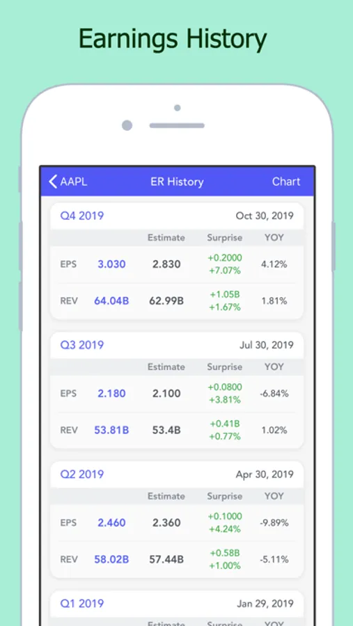 Earnings season is here! The newly designed earnings calendar and earnings history let you conveniently view upcoming earnings events of a single date or date range, detailed historical earnings data like revenue, EPS, estimate, surprise, year-over-year comparison, and revenue / EPS chart. You can also create multiple watchlists, add stocks, view advanced quotes, and check next earnings dates for all stocks in a watchlist with one tap.