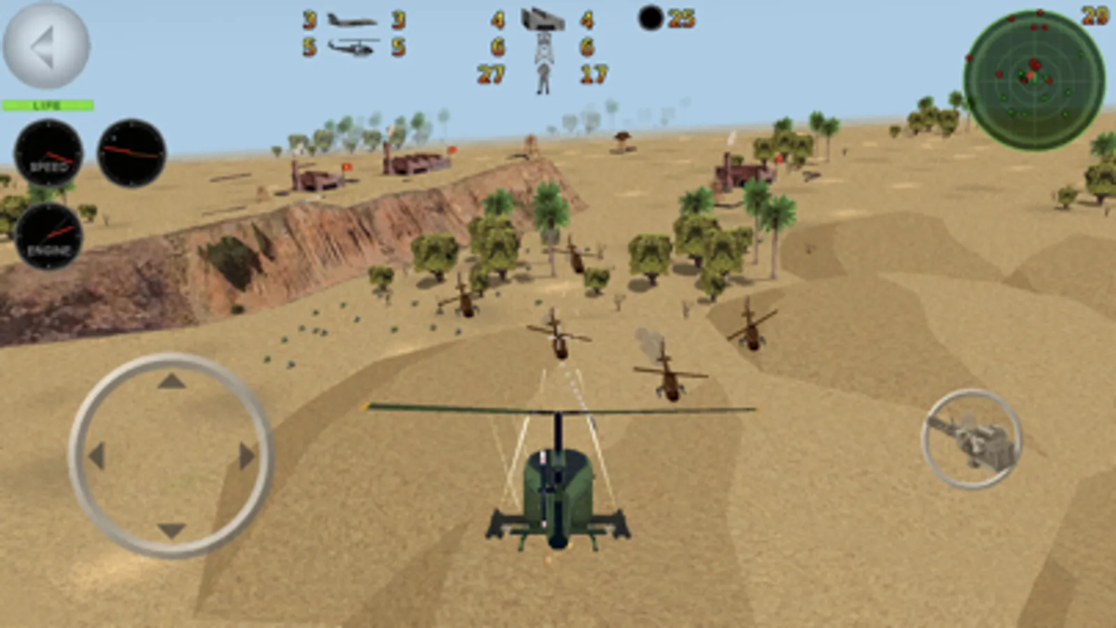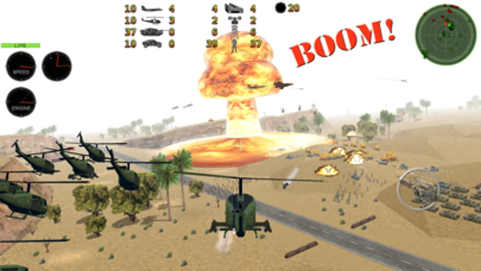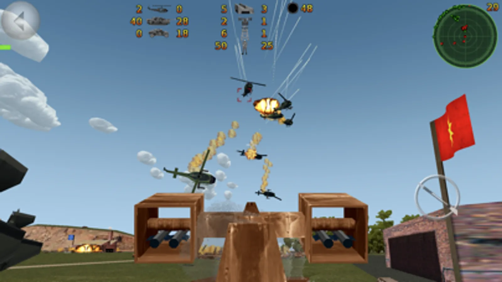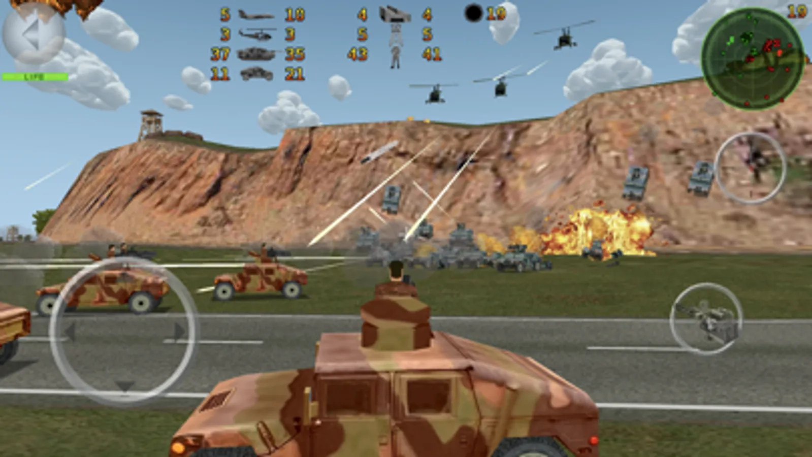 You can handle soldiers, jeeps, tanks, anti-aircraft, watchtowers, planes, and helicopters.