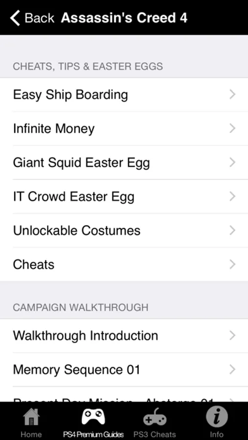Cheats & Walkthroughs for the top Playstation 4 titles! With cheats, codes and COMPLETE walkthroughs. Also included is a basic cheats section covering every PS3 game! New games are added on a regular basis as well!