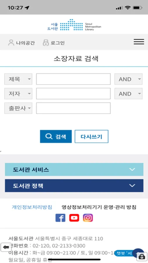 - 소장자료검색 : 서울도서관에서 소장하고 있는 자료들을 대상으로 검색하여 보여줍니다.