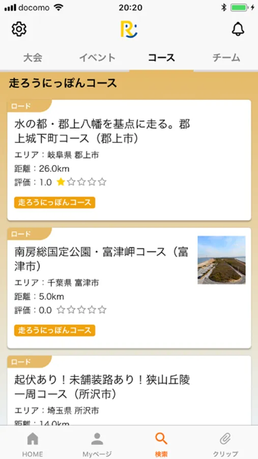 ランニングコースや、走ろうにっぽんコースが探せます!