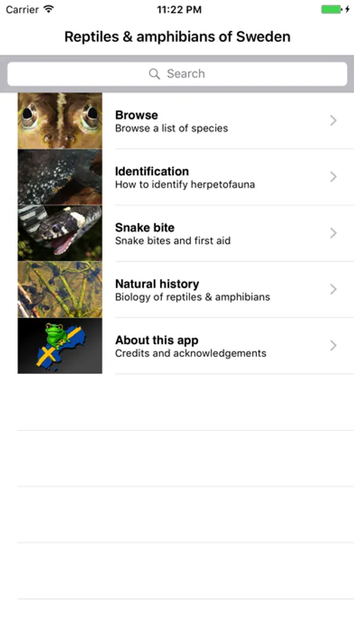 Reptiles and Amphibians of Sweden is a comprehensive electronic field guide to the lizards, snakes, frogs, toads, and newts of Sweden. With detailed information on all 19 species occurring in Sweden, it features: