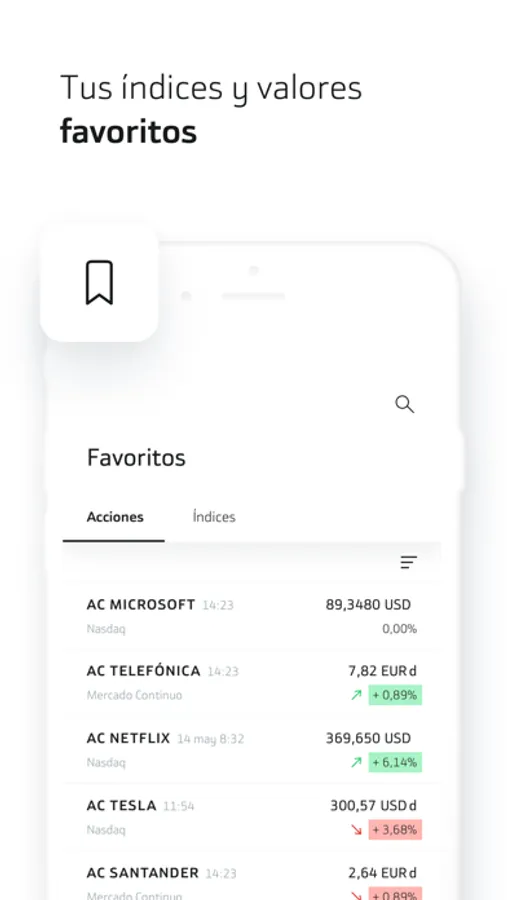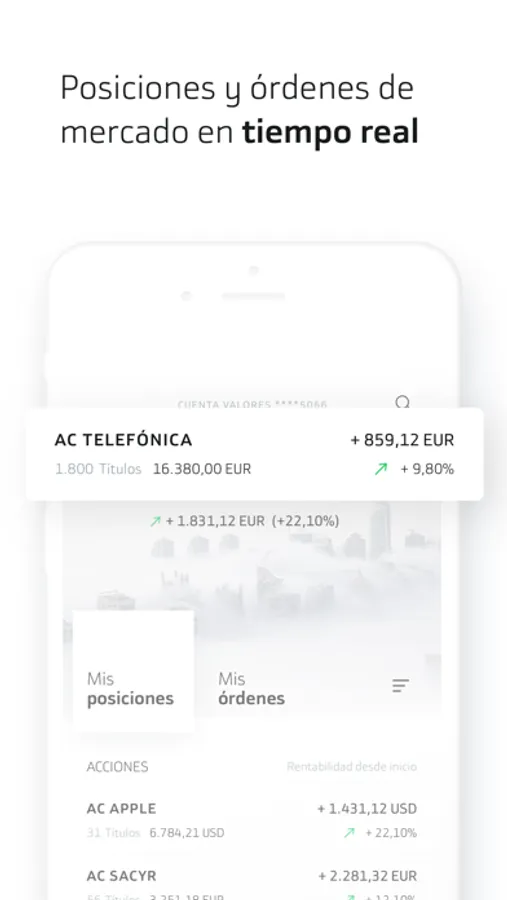 Puedes utilizar la aplicación conectándote como cliente de Bankinter con tus mismas claves que para el Broker actual. Podrás obtener la información de valores en tiempo real* (de acuerdo con tu perfil de usuario de broker y suscripción del servicio de tiempo real), hacer seguimiento de tus cuentas de valores y operar en valores nacionales e internacionales.
