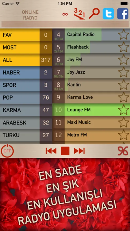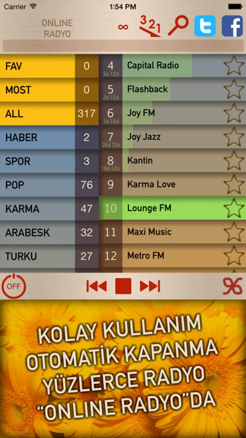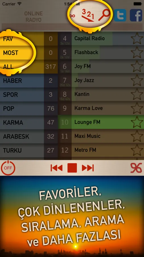 - Dinleme süresine göre radyoları sıralayabilirsiniz