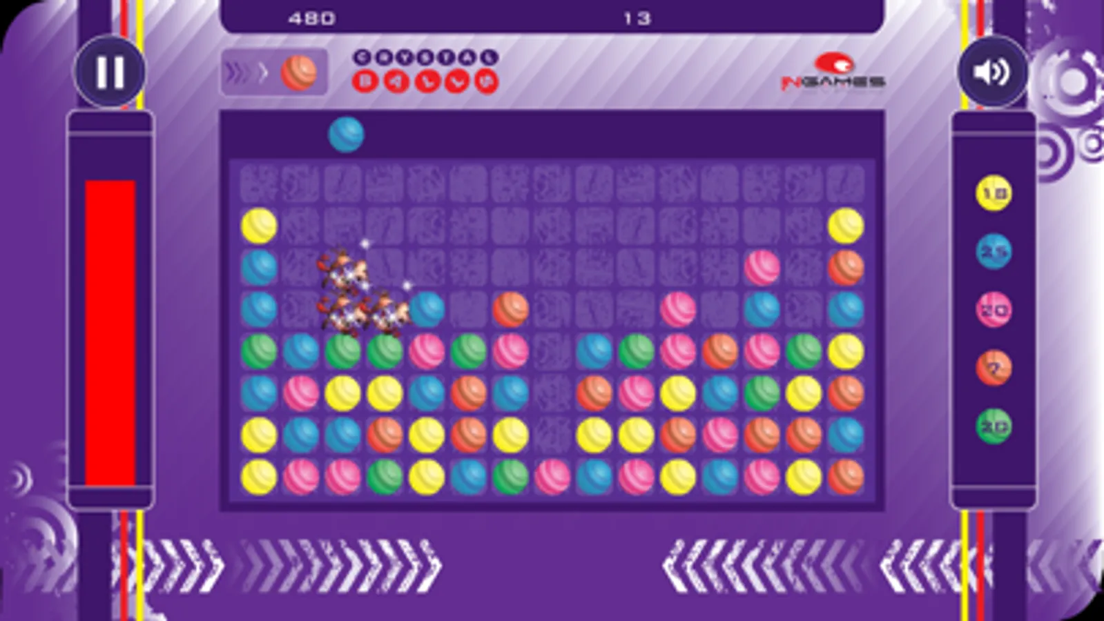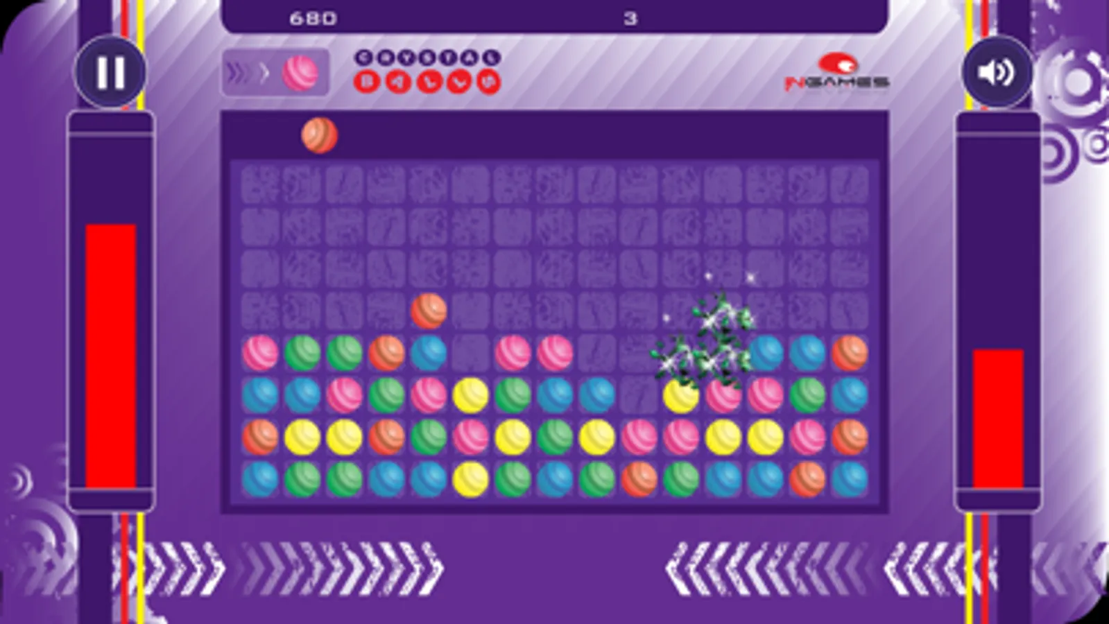 Crystal Balls is a simple and addicting match 3 puzzle game, where you have to drop down a moving ball to make it match with other balls of the same color.