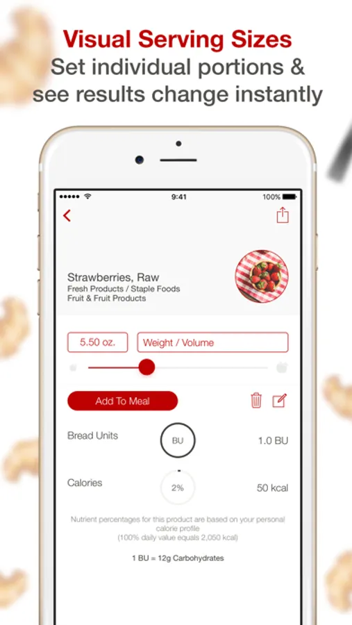 The app’s database contains carbohydrate equivalents in bread units for thousands of popular foods. Simply set your serving size with the swipe of your finger and include the additional calorie information if you struggle with the weight management part. All calculations necessary for a complete meal are automated if you combine multiple food portions and will display as one comprehensive result.