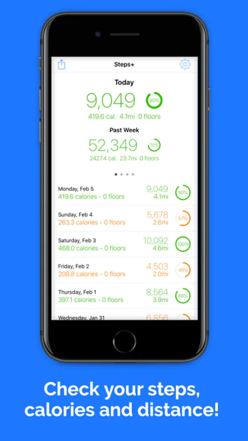 With Steps+, you can track step counts daily and for the past week, as well as many other data points such as calorie, distance, and floors (on supported devices). You also can merge your Apple Watch steps so you get credit for all your steps whether or not you are carrying your phone!