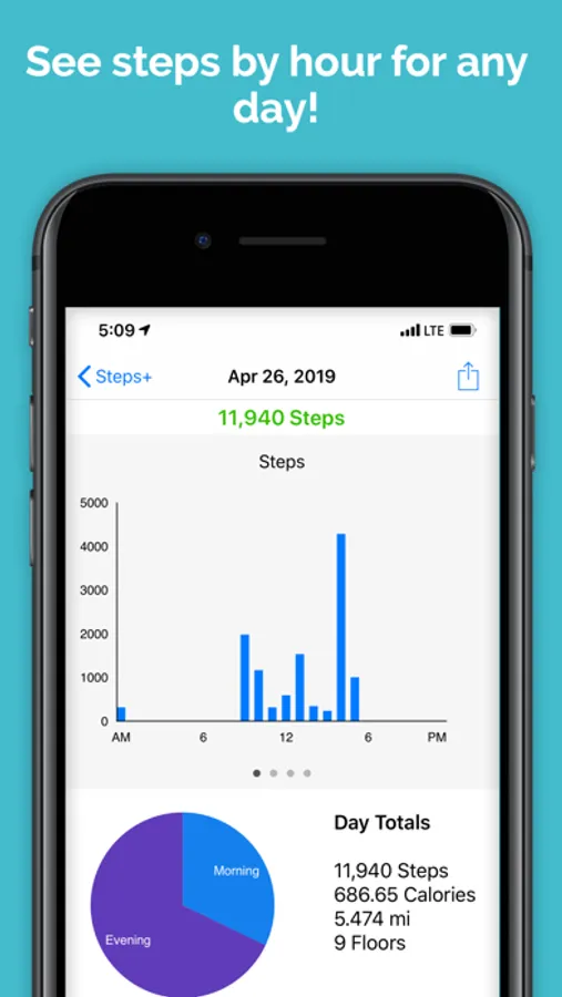 Steps+ allows you to get notifications for when you reach your goal. In addition, you can view your step data in a nice chart that shows the last week's worth of steps.